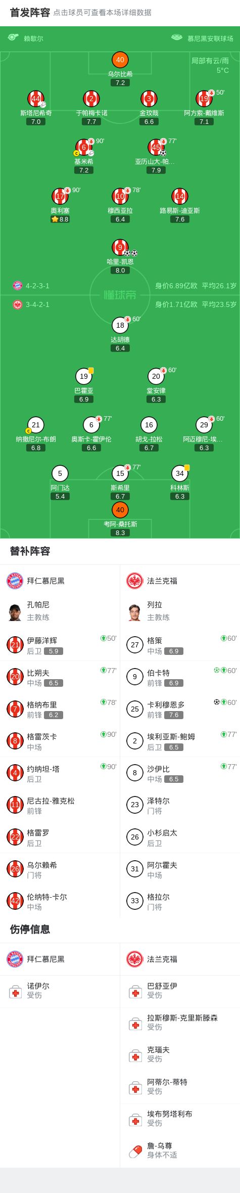第77分钟,凯恩送点,伯卡特命中扳回一球,法兰克福1-3拜仁